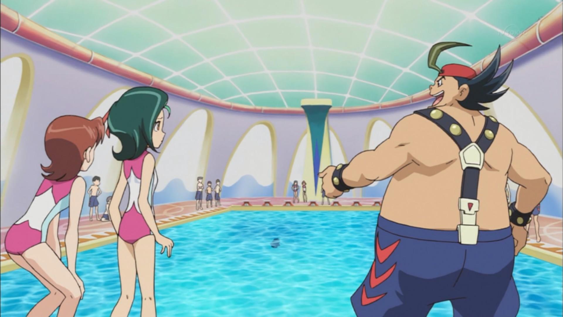 鉄男 プールでもサスペンダーかよ