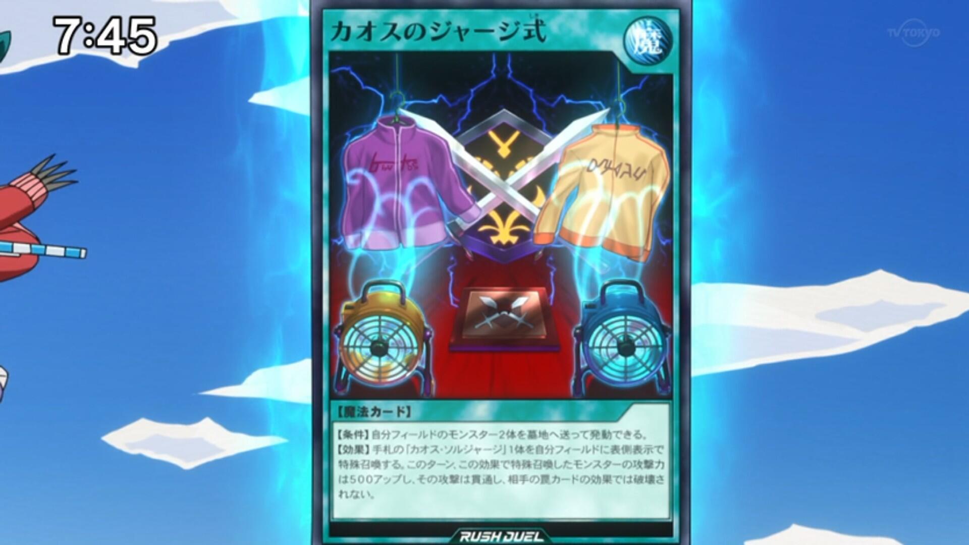 手札の「カオス・ソルジャージ」1体を自分フィールドに表側表示で特殊召喚する。このターン、この効果で特殊召喚したモンスターの攻撃力は500アップし、その攻撃は貫通し、相手の罠カードの効果では破壊されない。