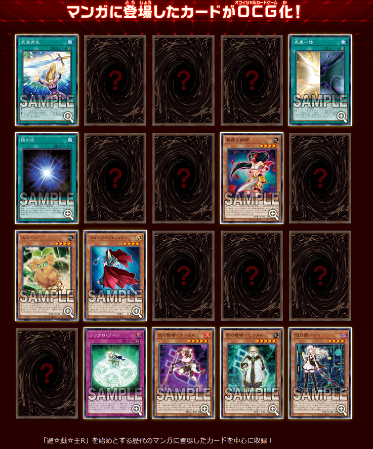 「遊☆戯☆王」シリーズの歴代マンガに登場したカードを中心に収録。