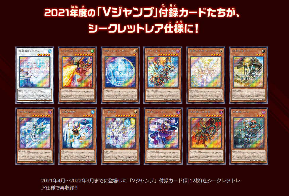 さらに、2021年4月~2022年3月までに登場した「Vジャンプ」付録(計12枚)をシークレットレア仕様で再収録!!