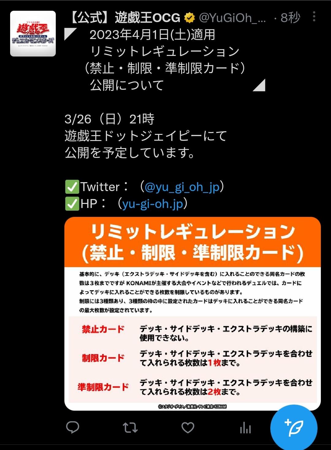 1078972073自分が使ってるデッキは制限改訂と無縁だから楽しみ