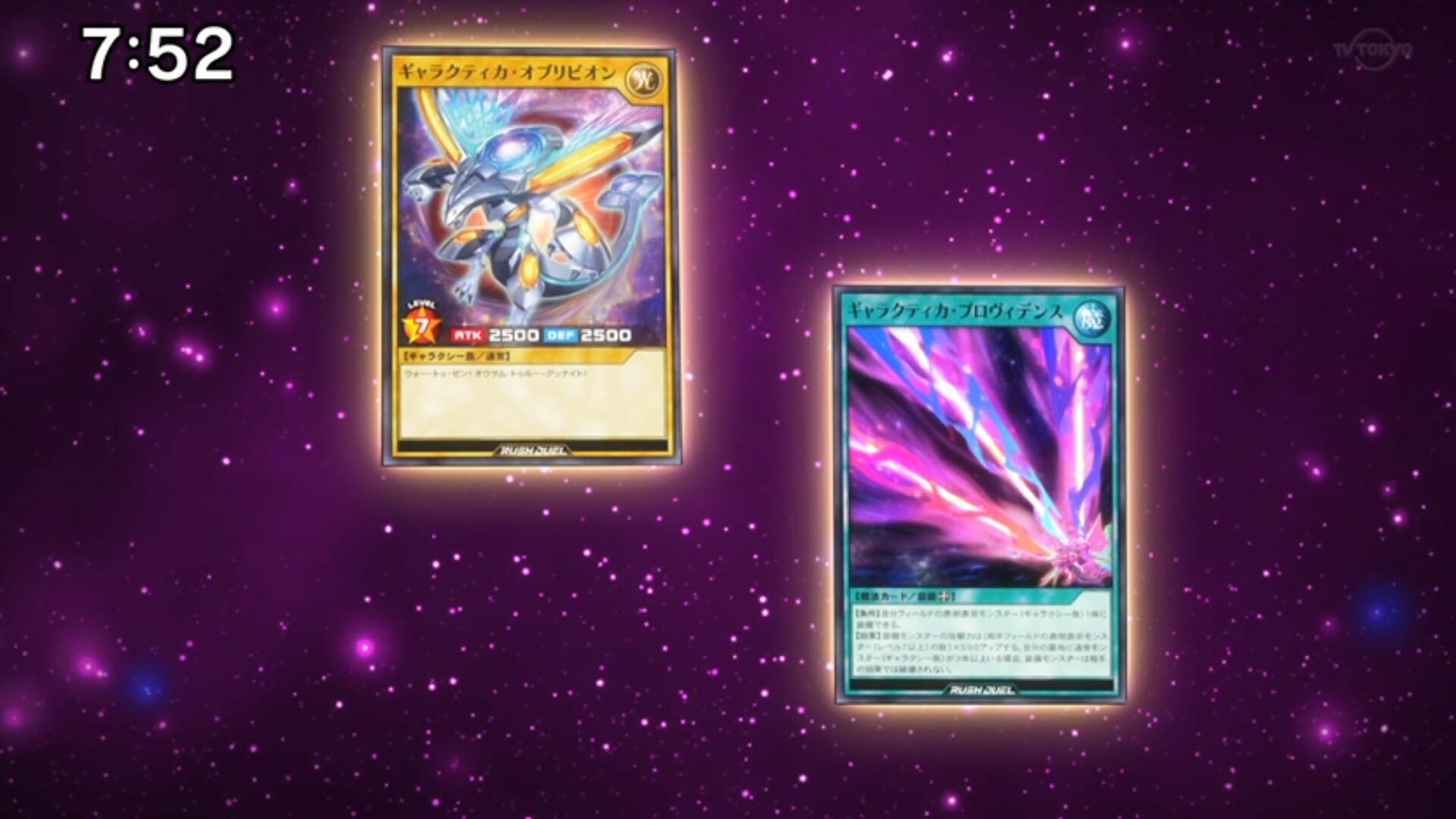 装備モンスターの攻撃力は[相手フィールドの表側表示モンスター(レベル7以上)の数]×500アップする。自分の墓地に通常モンスター(ギャラクシー族)が3体以上いる場合、装備モンスターは相手の効果では破壊されない。