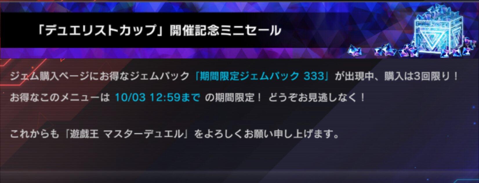 ジェム購入ページにお得なジェムパックが出現中!