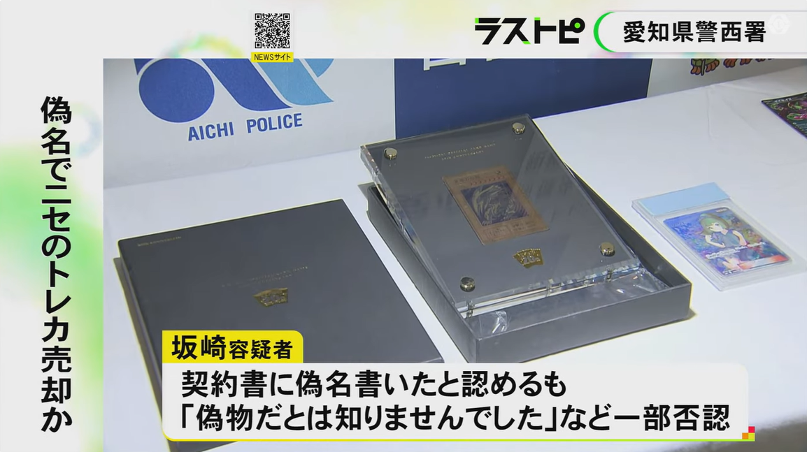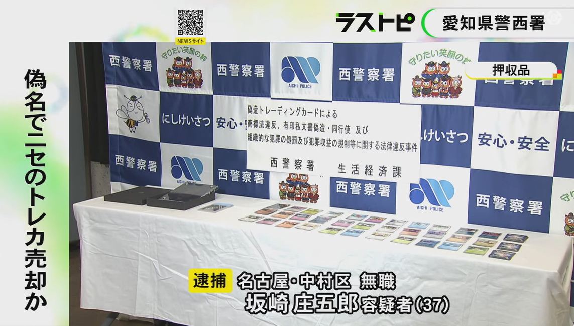 人気アニメ「ポケットモンスター」と「遊戯王」の偽造トレーディングカード2枚を計70万円で販売したとして、愛知県警西署は25日、商標法違反(商標権侵害)などの疑いで、名古屋市中村区平池町の無職坂崎庄五郎容疑者(37)を逮捕した。「カードが偽物とは知らなかった」と容疑を一部否認している。