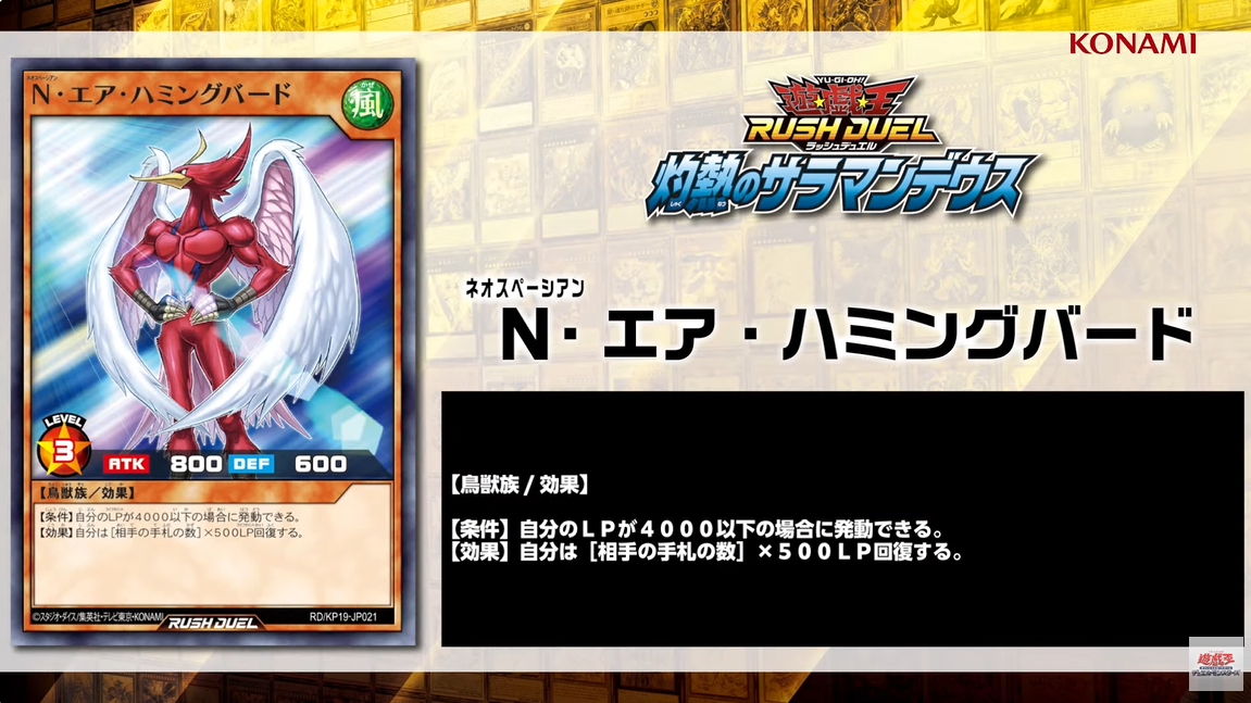 - エアハミングバード、手札使い切りが基本のラッシュだと効果使いづらいのにライフ4000以下の条件付けられとる…先行1ターン目で使うと1万越えちゃうから?にしても使いづらいと思うけど。