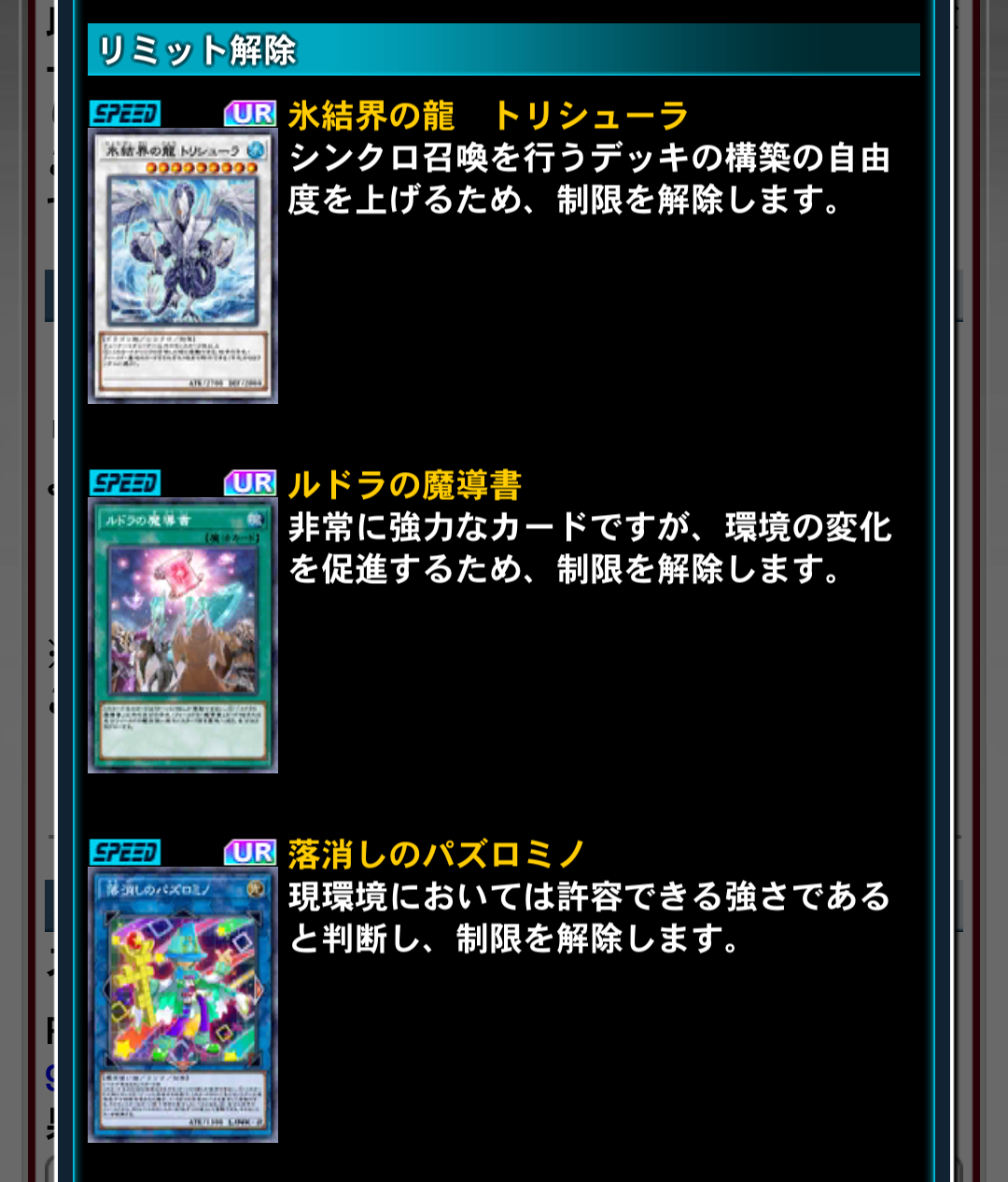- 現時点で複数枚入手する手段はないが、トリシューラ、ルドラといったセット販売で実装されたリミット1カードが解除されるのは意外