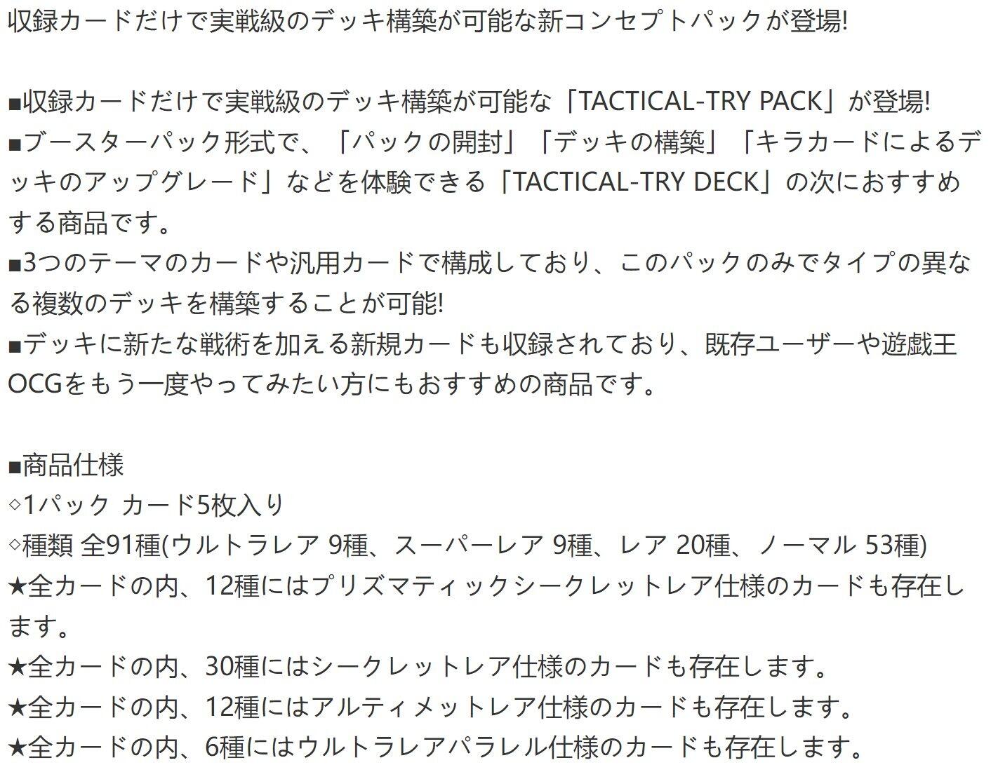 収録カードだけで戦術の異なる複数のテーマの実戦級デッキ構築が可能な新コンセプトパック『TACTICAL-TRY PACK(仮)』が2025年6月28日(土)に発売されることが決定した。