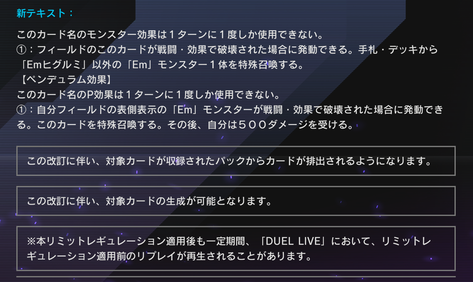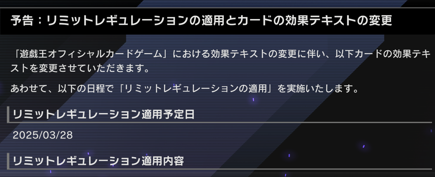 【予告:リミットレギュレーションの適用とカードの効果テキストの変更】