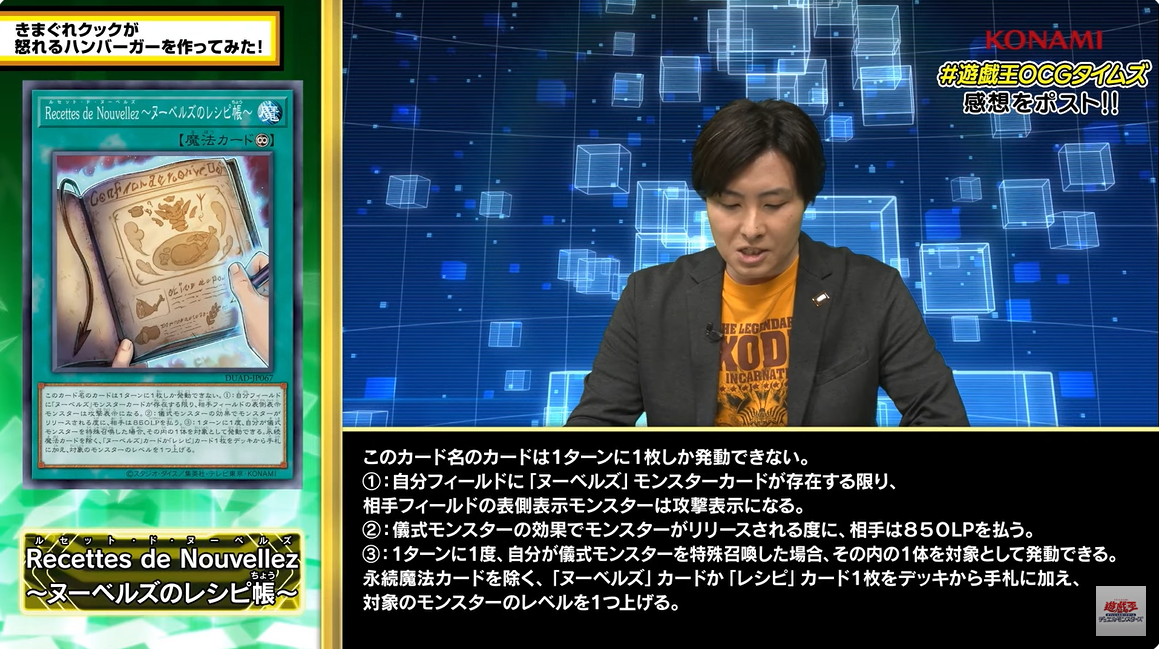よくよく見たらシェフのP効果、P以外のヌーベルズカードだから一応フィールド魔法経由してレシピには触れたわ。
