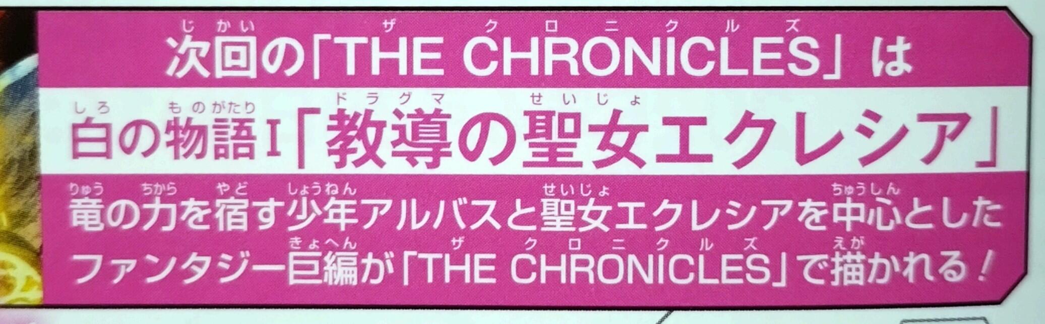 じゃなきゃ今後のクロニクルアニメに全く期待できなくなる