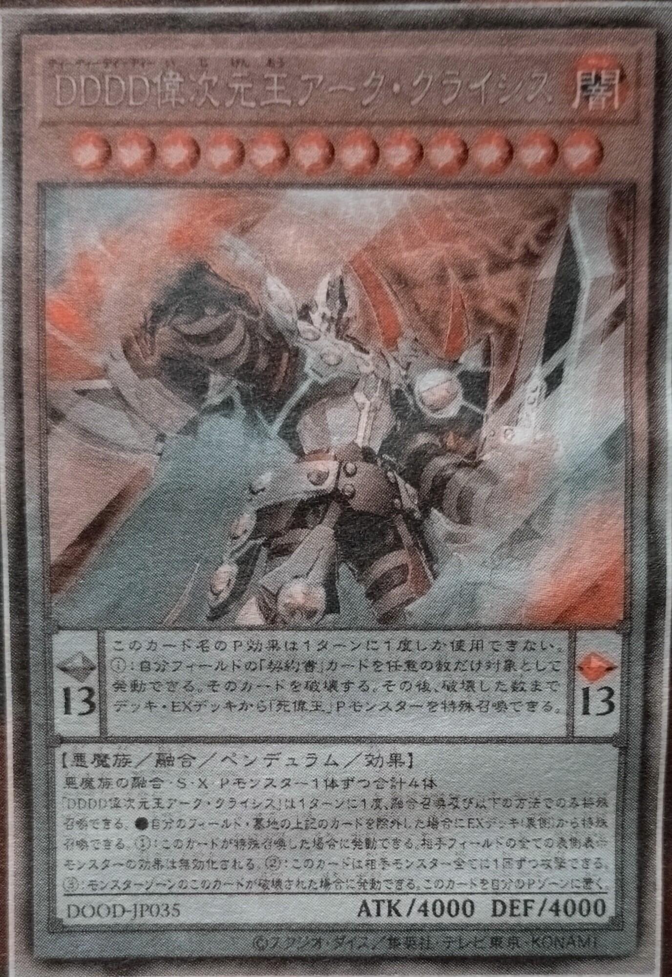 「DDDD偉次元王アーク・クライシス」は1ターンに1度、融合召喚及び以下の方法でのみ特殊召喚できる。