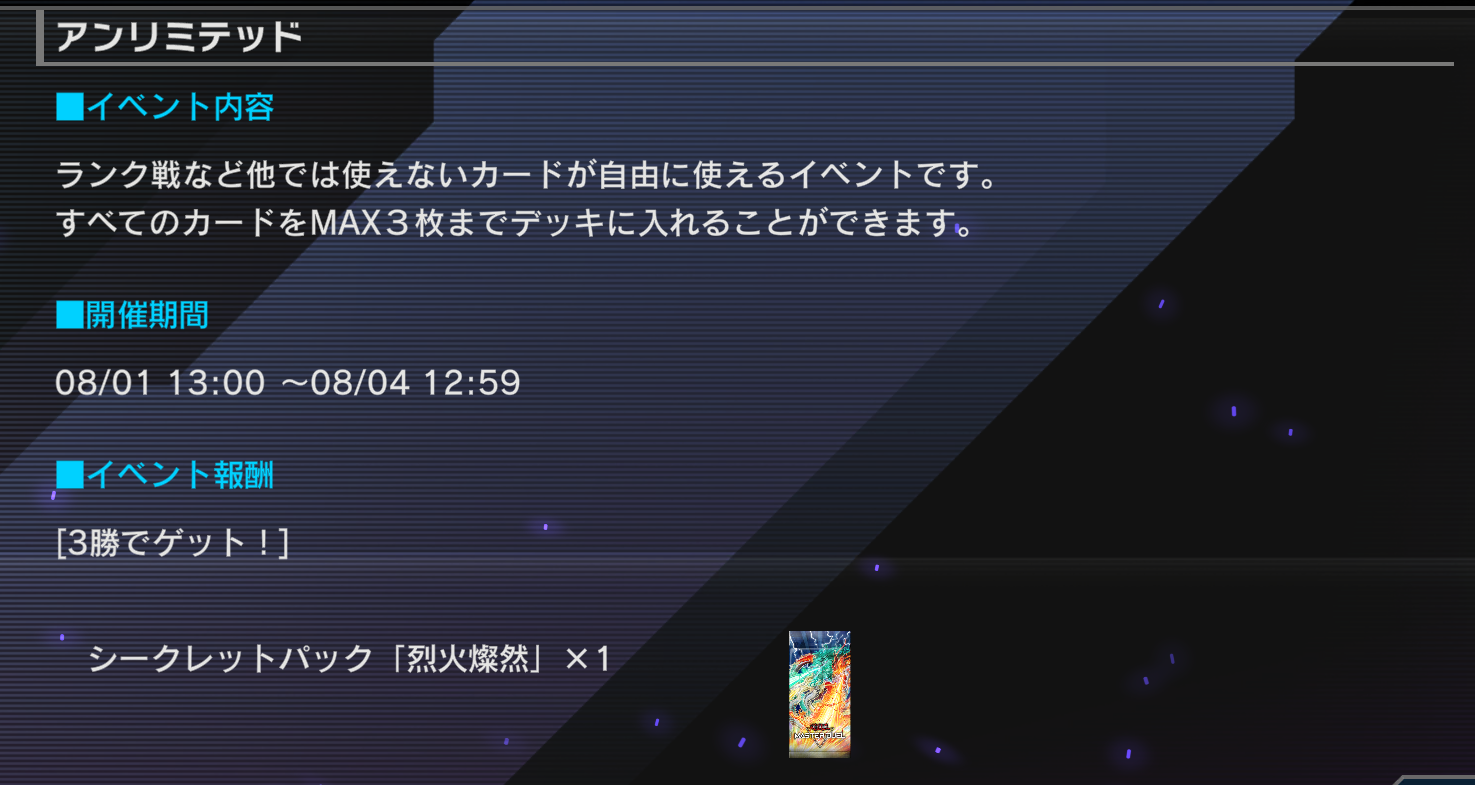 ランク戦など他では使えないカードが自由に使えるイベントです。#遊戯王マスターデュエル pic.twitter.com/Bp6JRN28OJ