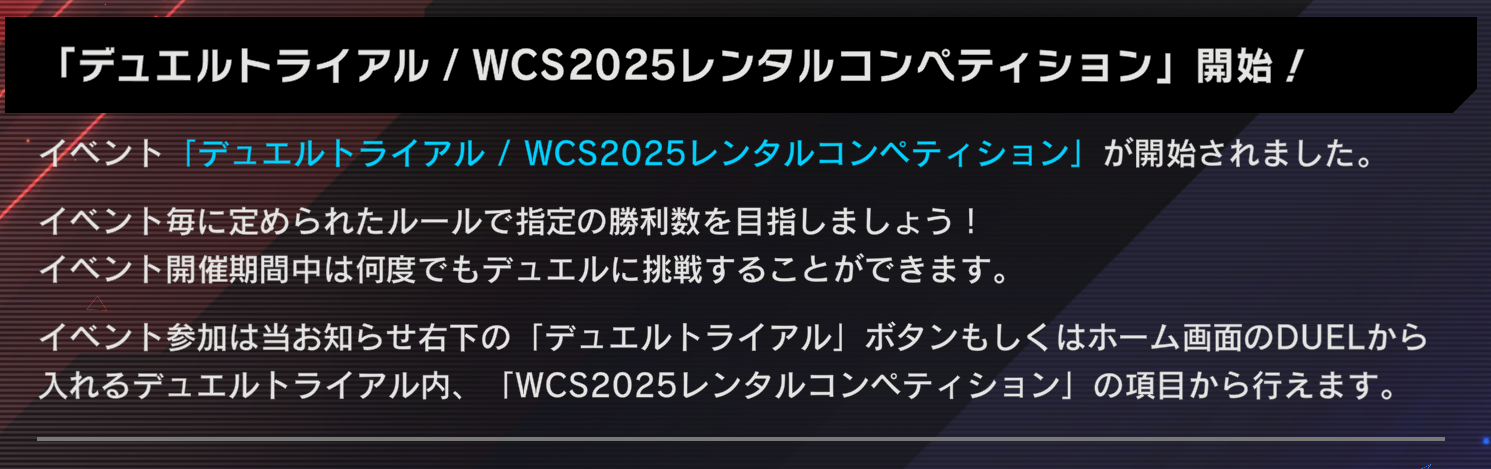 開催期間:9/5(金)14:00~9/8(月)12:59#遊戯王WCS2025 優勝チームの選手が使用したデッキで競うイベントです!#遊戯王マスターデュエル pic.twitter.com/vddey0cNub