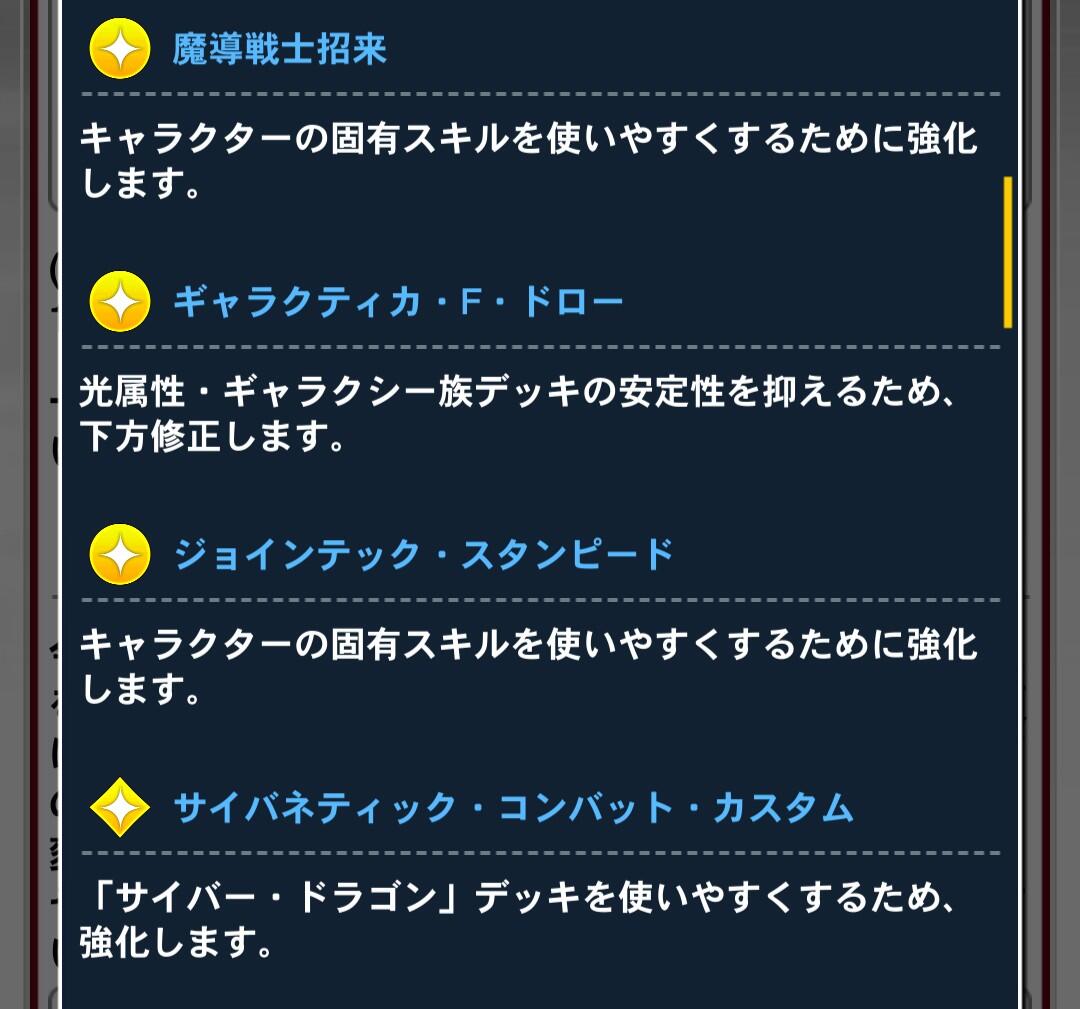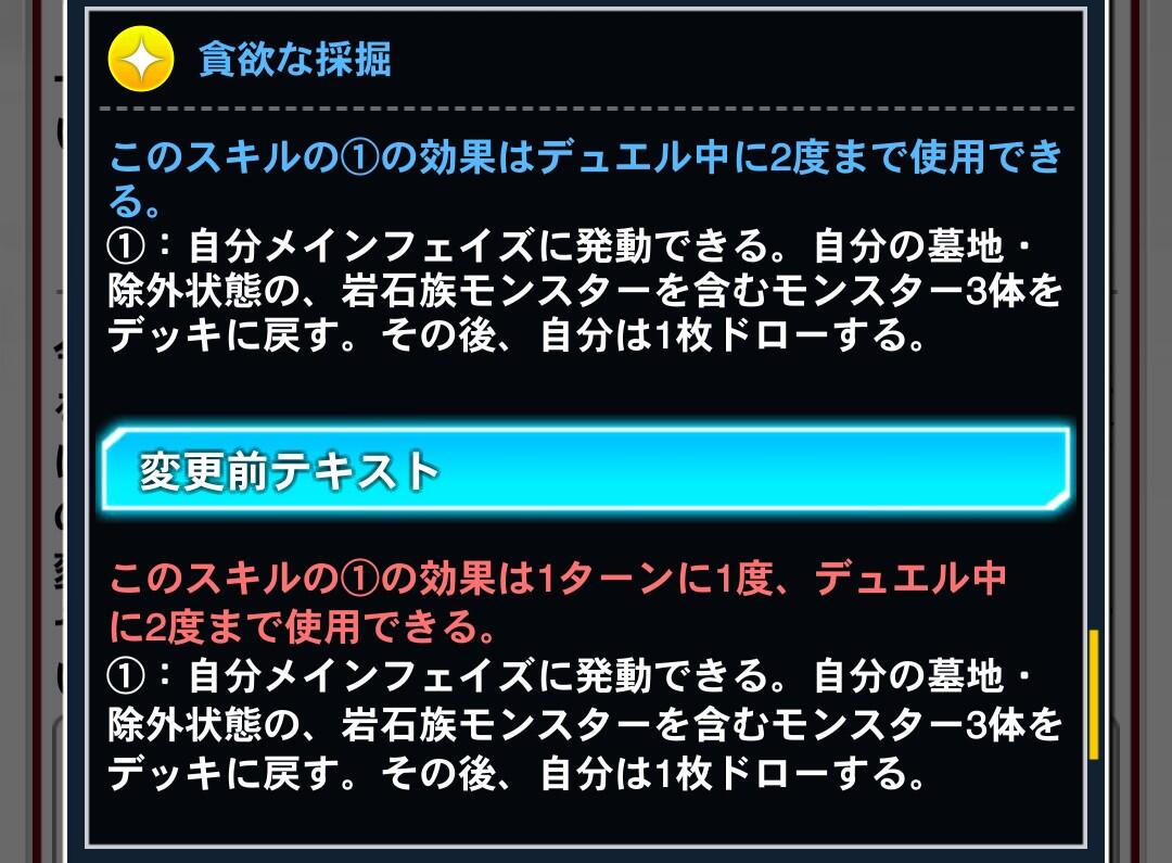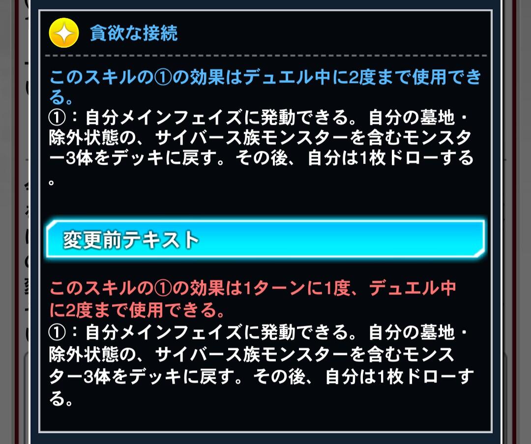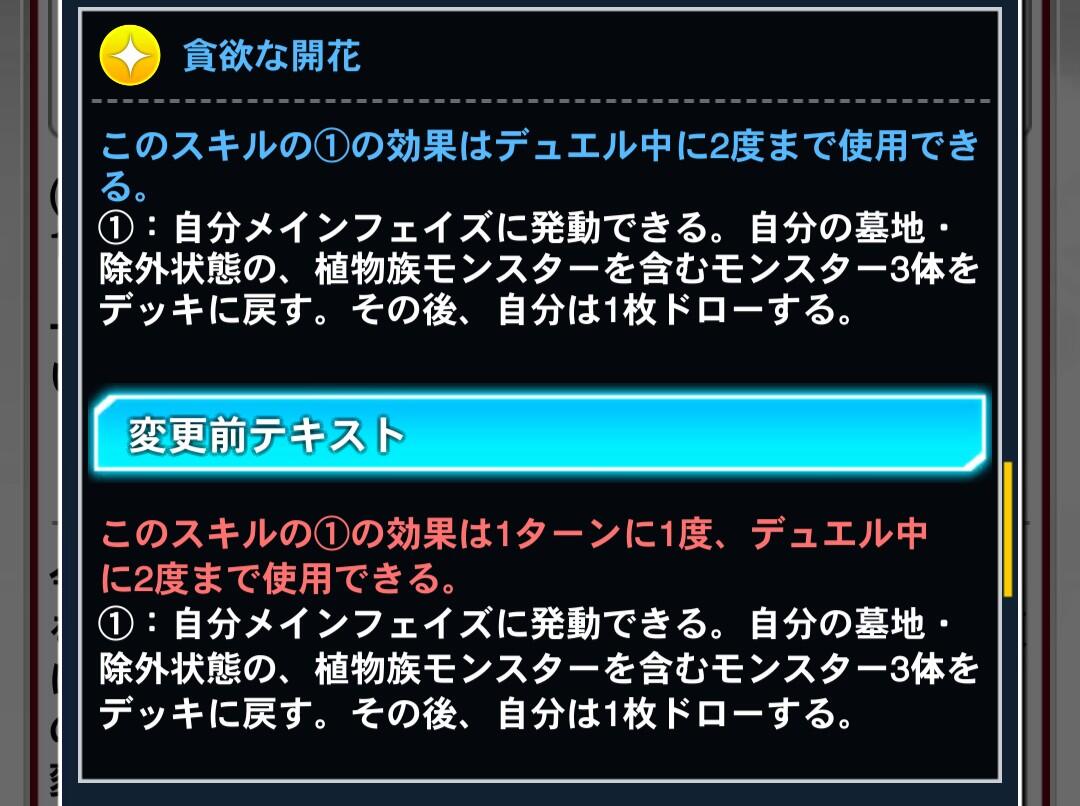 - ユーザー数の減少率がマスター配信直後の次くらいに酷かったからなのか今回はスキルだけ弱体化してカードは規制しない方針にしたんだろうなって思いたくなるくらい環境デッキへの規制が甘い
