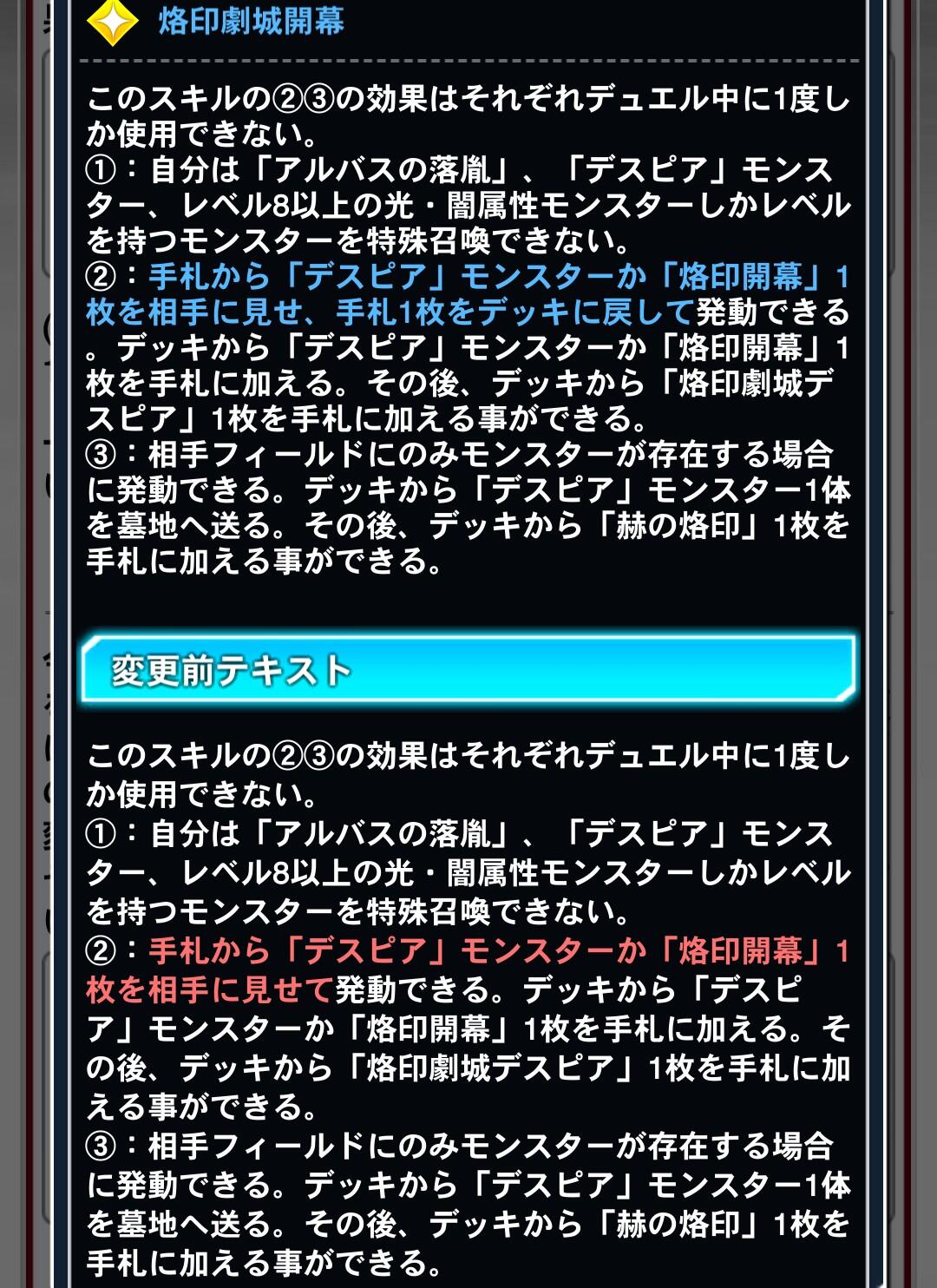 - 今まさにデスピア作ろうとパック引きまくってたとこなのにそりゃないよ。ジェム返してくれ。