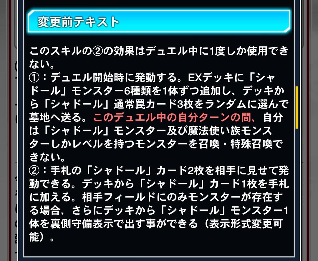 - シャドールのスキルは相手ターンでもシャドールや魔法使い族以外出せなくなっただけでミドラージュのEXデッキ追加は消さないのかよ