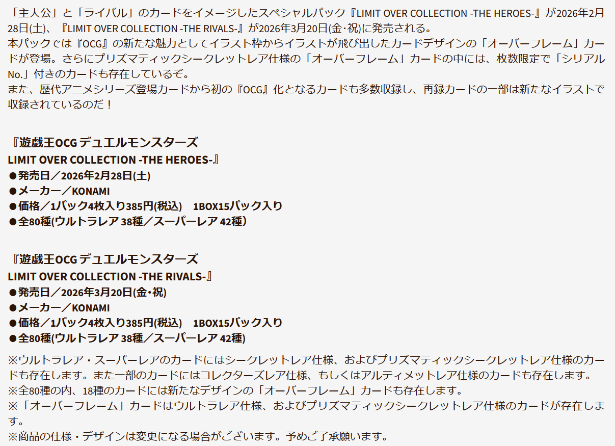 ※「オーバーフレーム」カードはウルトラレア仕様、およびプリズマティックシークレットレア仕様のカードが存在します。