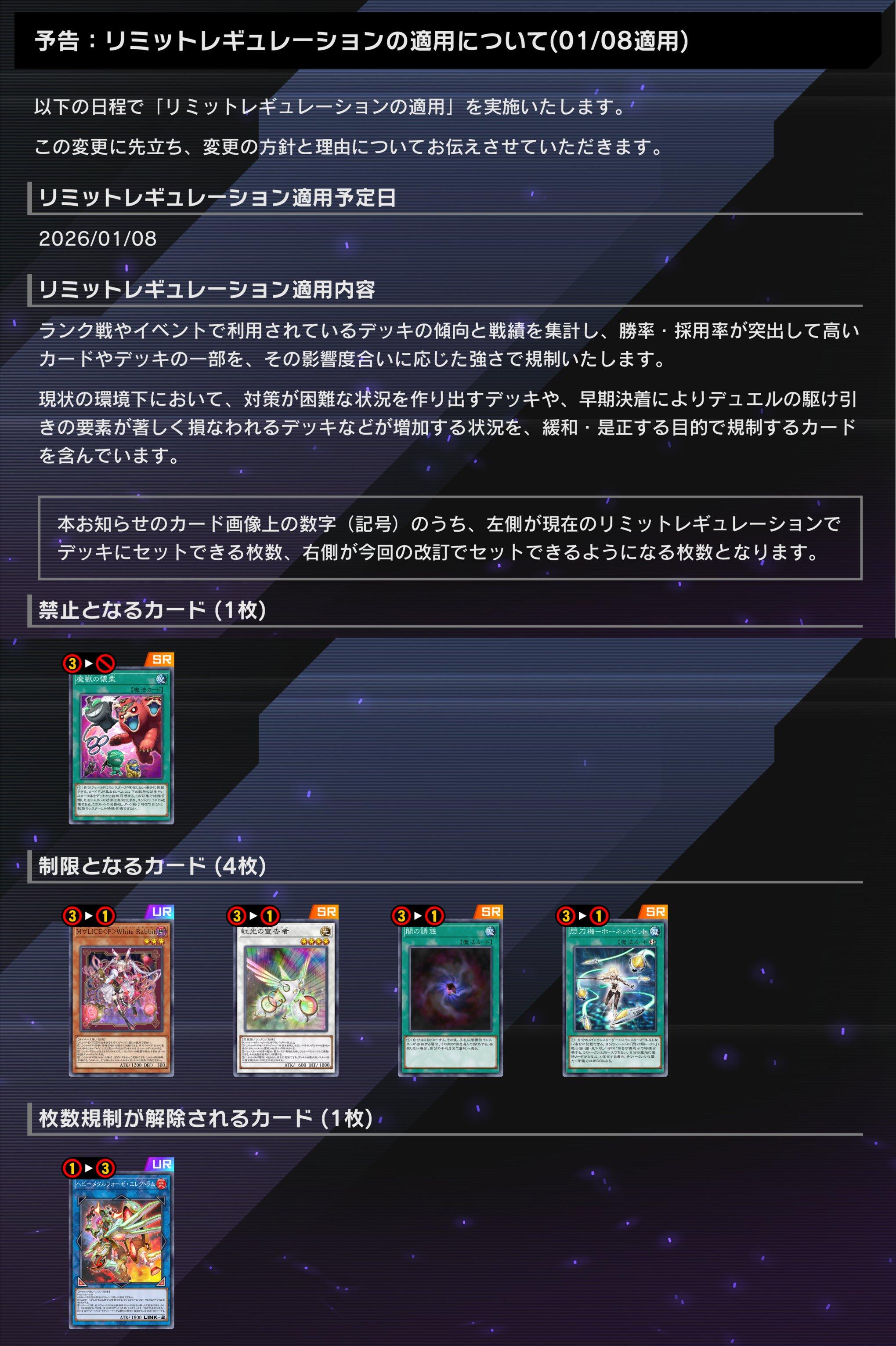 2026年1月8日に「リミットレギュレーションの適用」を実施いたします。